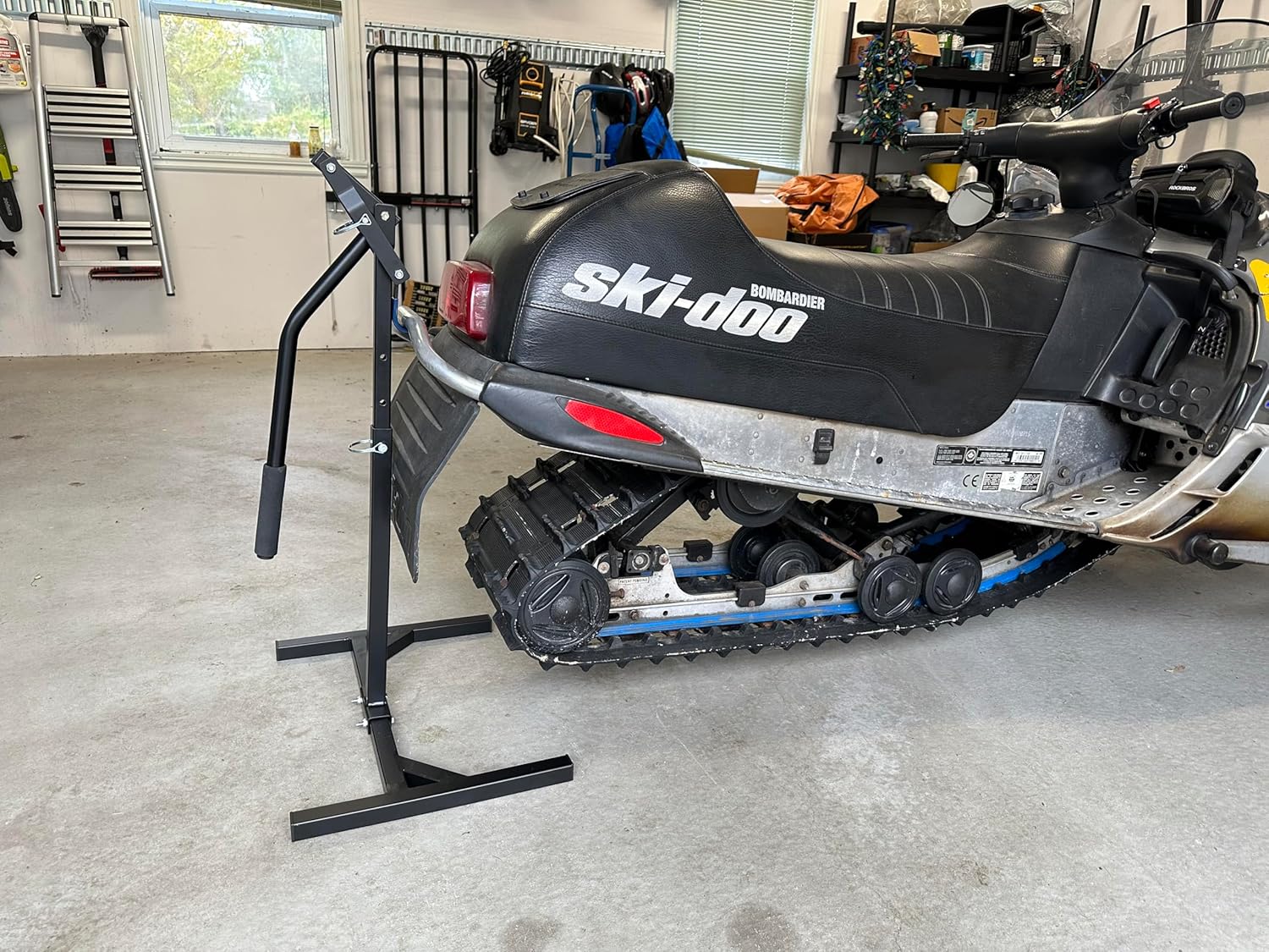 Constructed from heavy-duty, powder-coated steel, this lift supports up to 600 lb and is designed to handle real-world use season after season. Three adjustable height positions and a maximum lift height of 32 inches provide the clearance you need for servicing, track inspection, and storage.